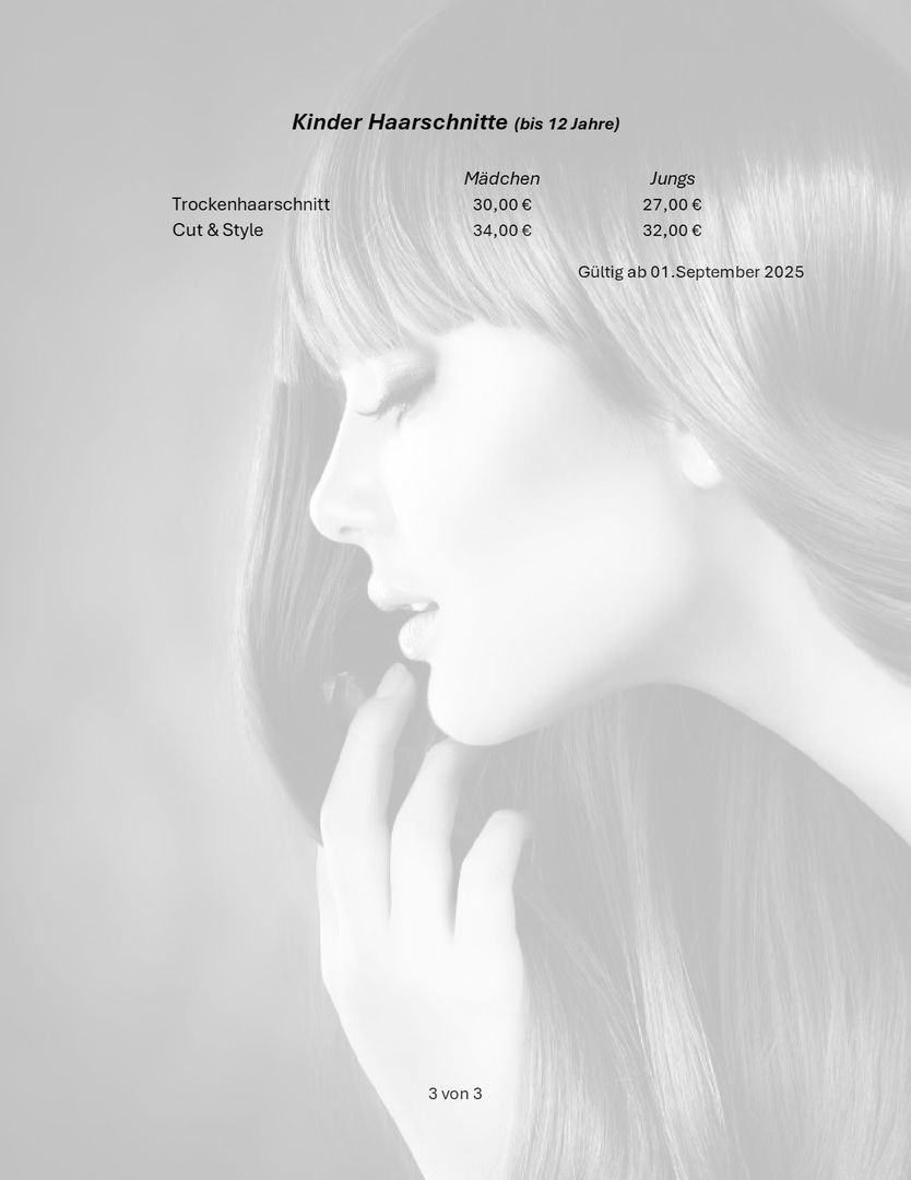 Du möchtest wissen, wieviel dein Friseurbesuch bei uns kostet? Hier findest du die Preise für alle Einzelleistungen. Noch einfacher geht’s in unserer Online-Buchung: Dort findest du dein persönliches Wunschpaket nach Haarlänge, inklusive Pflege, Styling & allem, was dein Look braucht. So buchst du wenigen Klicks deinen Wunschtermin, ganz ohne Wartezeit am Telefon. Und vor allem mit klarem Endpreis und Dauer, damit du deinen Tag trotz Friseurtermin flexibel planen kannst.
